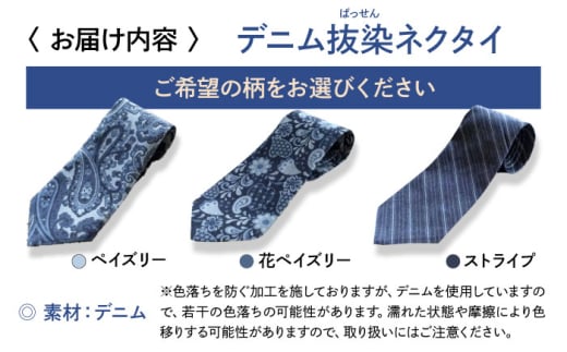 デニム 「デニム抜染(ばっせん)ネクタイ」<ストライプ> ファッション ストライプ ネクタイ ギフト デニム生地 広島県福山市 / 山陽染工株式会社 [BADS024]