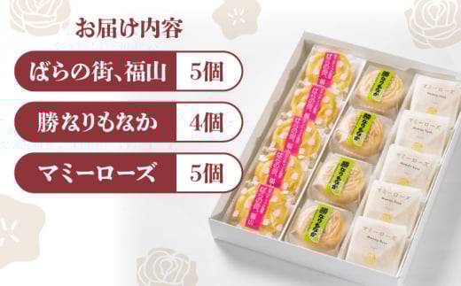 和菓子 福山ゆかりのお菓子詰め合わせ 3種14個入り(マミーローズ5個・勝なりもなか4個・ばらの街、福山5個) 広島県福山市/株式会社三河屋 まんじゅう もなか レモン 詰め合わせ 個包装 [BADJ003]