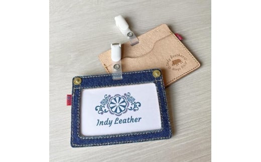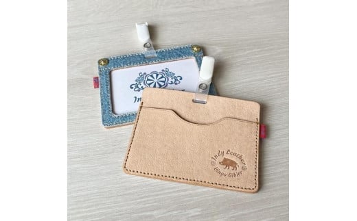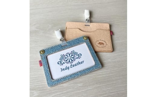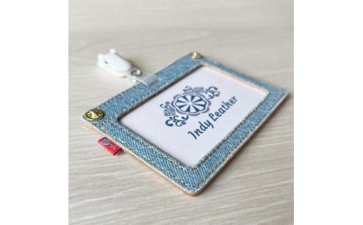 福山デニムとジビエレザーの贅沢な融合 ケース 名札 ID カード デニム 革