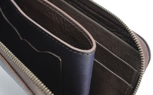 L字ファスナー財布「リセス」 濃藍 瀬戸内の海 天然藍染め・福山レザー 自社一貫製造 L字 長財布 財布 ウォレット カードポケット 経年変化 手染め 手擦り 天然藍染め 福山レザー おしゃれ かわいい デザイン ファッション 贈り物 ギフト プレゼント日本製 L字 長財布 財布 ウォレット 藍染 人気 おすすめ 日本製 広島県福山市/株式会社サード [BACM009]