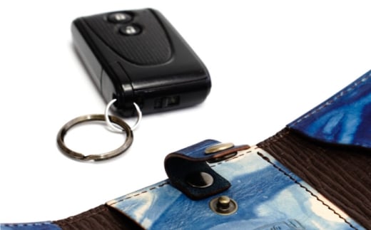 キーケース「クレ・スィス」 薄藍 瀬戸内の空 天然藍染め・福山レザー 自社一貫製造 広島県福山市/株式会社サード キーケース カード収納 鍵 取り外し可能 プレゼント 福山レザー 藍染 手染め 手絞り レザー 経年変化 備後絣 ハンドメイド 革職人 オリジナル [BACM010]
