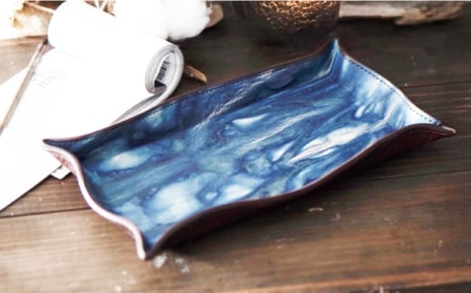 『天然藍染』シリーズのレザートレイ トレー 革 本革 アクセサリートレイ
