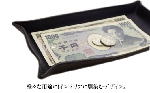 レザートレイ 「レセプシオン」 濃藍 瀬戸内の空 天然藍染め・福山レザー 自社一貫製造 広島県福山市/株式会社サード コイントレイ 本革 レザー トレイ 小物入れ おしゃれ 釣り銭トレイ [BACM027]