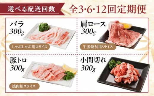 【全12回定期便】バラエティセット約1,200g (肩ロース・バラ・小間切れ・豚トロ 各300g) 広島県福山市/日本畜産株式会社 豚肉 ぶたにく こま切れ ロース しゃぶしゃぶ 小分け [BAER081]