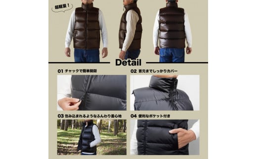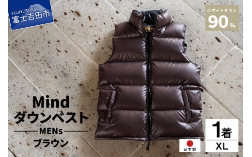 高品質 ダウンベスト 900フィルパワー 羽毛 メンズ 日本製 Mind XLサイズ ブラウン