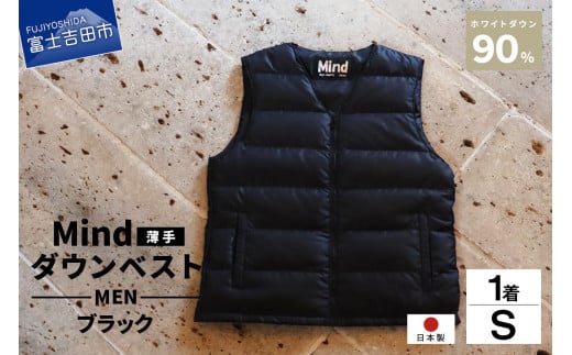 高品質 ダウンベスト(薄手)880フィルパワー メンズ 日本製 Mind 羽毛 Sサイズ ブラック