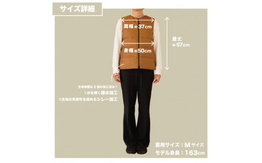 高品質 ダウンベスト(薄手)880フィルパワー レディース 日本製 Mind 羽毛 Sサイズ キャメル