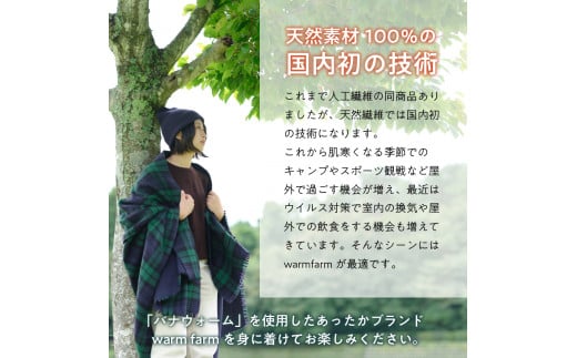 「バナウォーム」を使用したあったかブランド「ウォームファーム」を身に着けてお楽しみください。