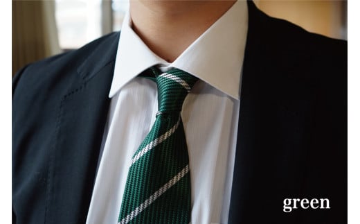 【Hadashin】シルクネクタイ(グリーン)【401 ホワイトストライプ】