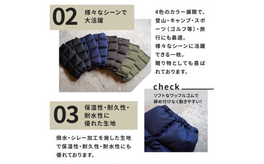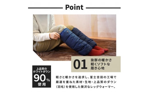 高品質 羽毛 レッグウォーマー フリーサイズ アウトドア キャンプ 国産 Mind ネイビー