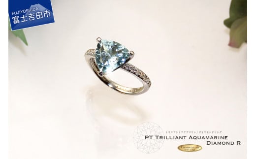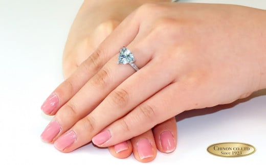 透き通るようなアクアブルーが美しい三角形のキラキラのアクアマリンのリング