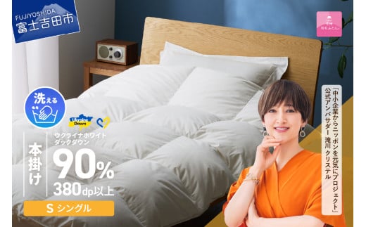 【甲州羽毛本掛けふとん】手洗いできるウクライナホワイトダウン90% ホワイト(シングル) ふとんカバー付 羽毛布団 シングル 掛け布団 洗える 布団 寝具 回収キット付き 山梨 富士吉田