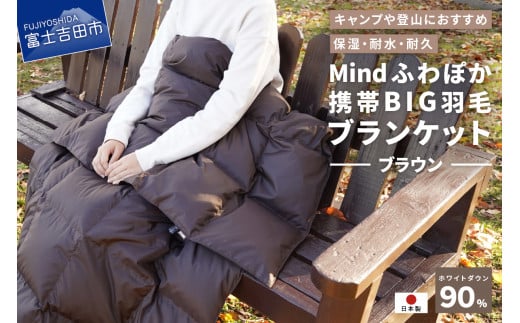【山梨県No.1】 高品質・大人気★Mind★ふわぽか携帯BIG羽毛ブランケット(ブラウン)日本製 オールシーズンOK!収納袋付き