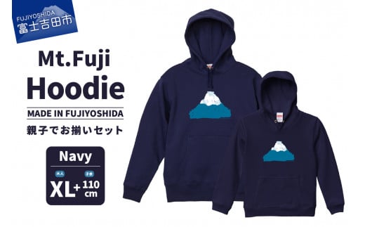 【親子でお揃い】 Mt.Fuji Hoodie SET 《MADE IN FUJIYOSHIDA》Navy XLサイズ×Navy 110cm