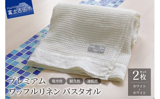 プレミアムワッフルリネンバスタオル2枚セット(ホワイト×ホワイト)