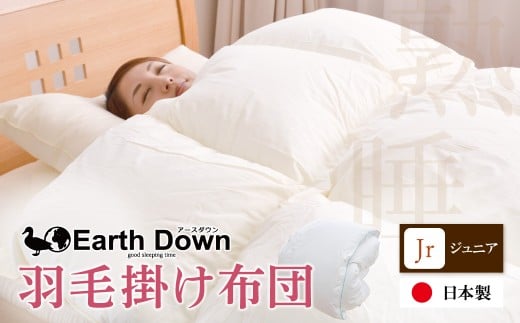 W32-01 アースダウン 羽毛掛布団 ジュニアサイズ(umou-0112) 日本製 300dp 以上 羽毛布団 冬用 あたたかい 日付指定可 布団 軽量羽毛ぶとん 軽い かけふとん 子供用 キッズ 睡眠 ジュニア