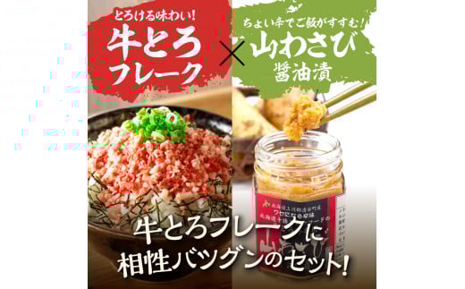 熟練の職人が作り上げた牛とろ丼と山わさび醤油漬けのセットです。