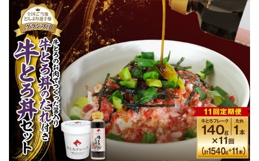 【11回定期便】受賞歴多数!人気の牛とろ丼セット 140g 牛とろのお肉でつくった醤入り牛とろ丼のたれ付き_S006-0206