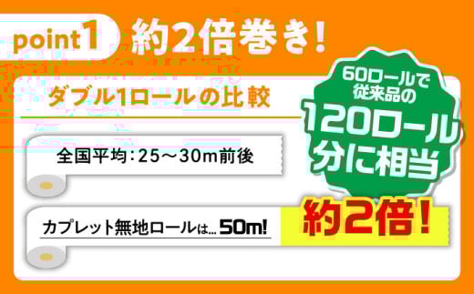 【2月発送】SDGs カプレット無地ロール 1R-50W-60 古紙再生利用脱プラ トイレットペーパー 【ダブル】2倍巻き 北海道・沖縄県・離島への配送不可 日用品 生活用品 エコ 岐阜市 / 河村製紙 [ANBJ005-2]