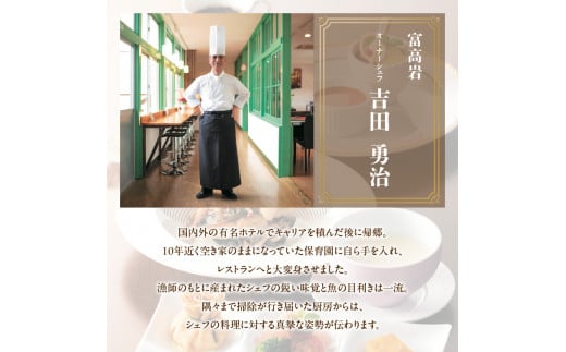 国内・海外一流ホテルでシェフを勤めた料理長が、地元玄海に貢献したいと始めたレストラン『Fujitakaiwa 富高岩』