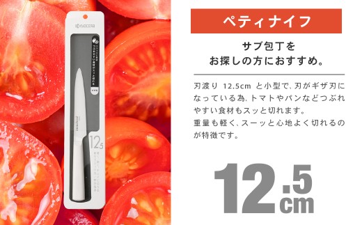刃渡り12.5cmと小型なサイズのセラミックナイフ