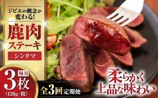 【12月上旬以降順次発送】【全3回定期便】鹿肉 ステーキ ( シンタマ ) 3枚 《喜茂別町》【EBIJIN】 ジビエ 鹿 シンタマ 希少部位 ステーキ ステーキ用 赤身 冷凍 冷凍配送 北海道 [AJAO041] 36000 36000円