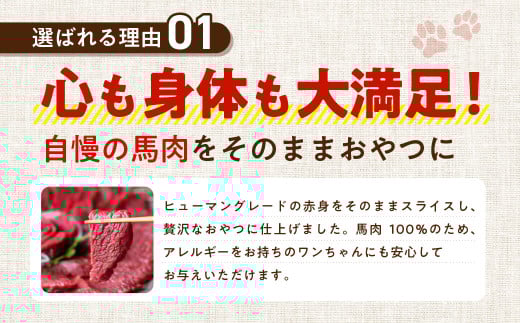 馬肉100%の食品添加物や酸化防止剤、保存料等不使用のジャーキーです。