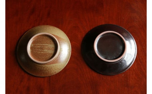 7. 【やちむんカフェ器人】5寸皿(いっちん&黒釉)各1枚セット ☆ 仲間功 焼き物 陶器 柄違い 限定数量 つる草 スイーツと ケーキと デザート皿 仲間陶房 伝統工芸品