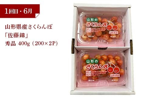 (1)6月 山形県産さくらんぼ<佐藤錦>秀品Lサイズ400g(200×2P)