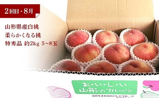 (2)8月 山形県産白桃 特秀品 約2kg 柔らかくなる桃 5~8玉