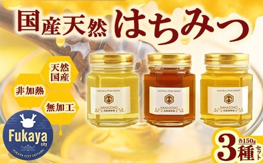 国産天然蜂蜜150g×3種詰合せ 【11218-0014】
