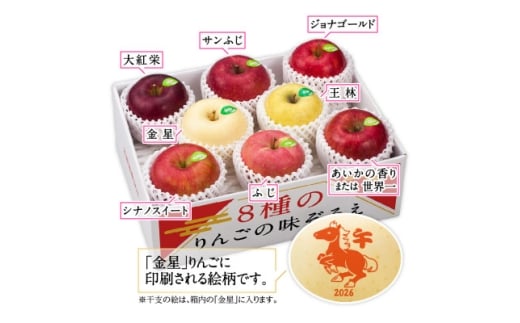 ・彩り8種のりんご詰合せ(干支りんご入り)[約2.2kg×1箱(8種:各1個)]