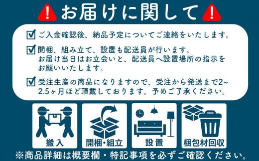 受注生産ですので発送までに2~2.5ヶ月程お時間を頂きます。