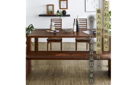 【大川家具】凛ダイニングテーブルセット ウォールナット (ベンチtype2、チェア2脚)幅2000mm 奥行800mm