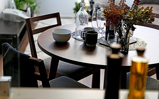 【開梱設置】高野木工 プレーン ラウンドダイニングテーブル90cm ウォールナット【10年保証】