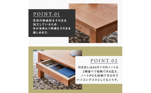 【大川家具】無垢材 センターテーブル ローテーブル 食卓テーブル ちゃぶ台 リビングテーブル 凛 幅1000 ブラックチェリー 引き出し付 おしゃれ 収納 天然木 組み立て不要 高級感 【設置付き】
