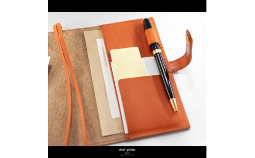 maf pinto (マフ ピント) レザー手帳カバー A6 (文庫本サイズ) オレンジシュリンク 本革 日本製
