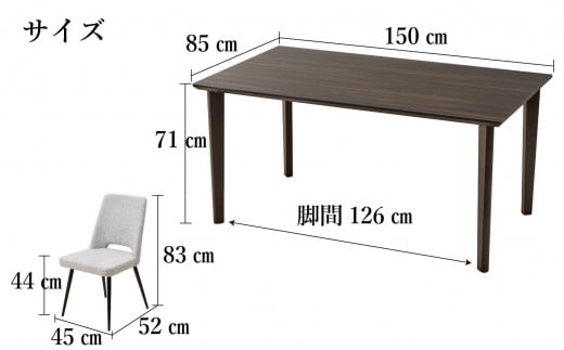 MT150テーブル(木脚)とDC-5イス4脚の5点セット【ウォールナット<4本脚・グレー>】