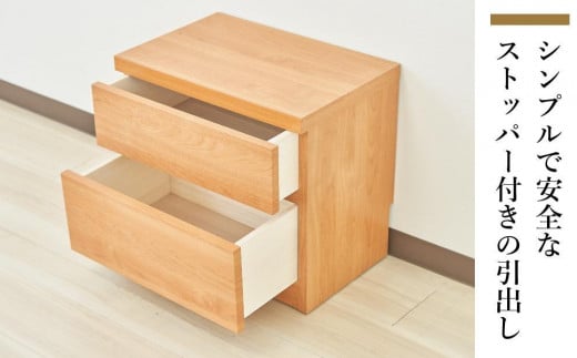 【洗面所などの限られた空間に便利】薄型チェスト 45cm幅2段 (ナチュラル木目)