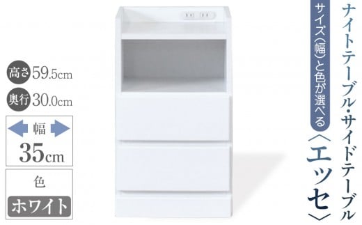 【ベットやソファの横に便利な棚】サイズと色が選べるナイトテーブル・サイドテーブル(エッセ)(ホワイト・幅35cm)