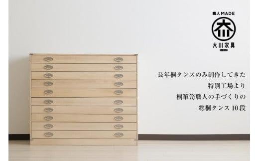 総桐 桐たんす 10段 チェスト /高級感ある銀の取っ手(かぐら)