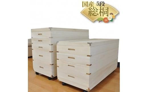 総桐 衣装ケース 5段 キャスター付き 深型 浅型【きよか】