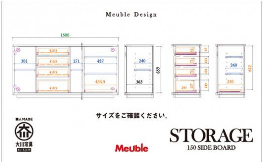 モーブル社の定番【ストレージ150サイドボード】★W1500×D420×H750mm【オークナチュラル】