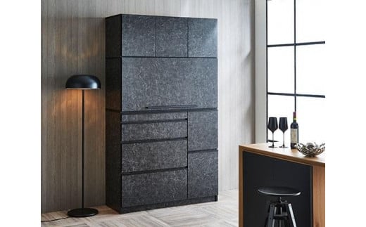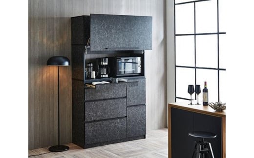 【開梱設置】食器棚 レンジ台 ナポリスライドアップ扉タイプ 幅120 ストーンブラック キッチンボード 家具