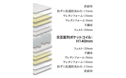●スプリングコイルの形状:ちょうちん型ばね(交互配列・6巻ポケットコイル)