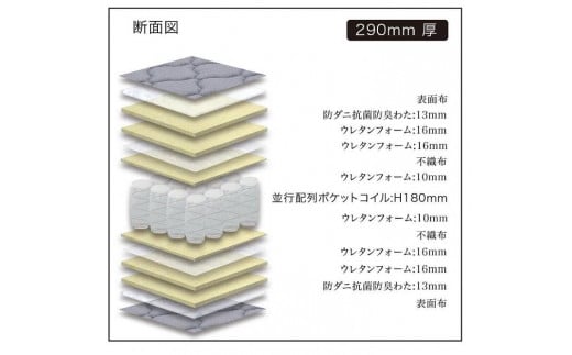 ●スプリングコイルの形状:ちょうちん型ばね(並行配列・6.5巻ポケットコイル)