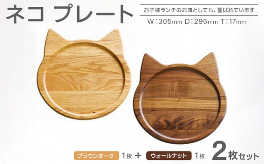 ネコプレート 2枚セット (ブラウンオーク&ウォールナット)