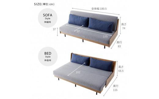 幅180.5cm×奥行83cm×高さ74cm(伸縮時)