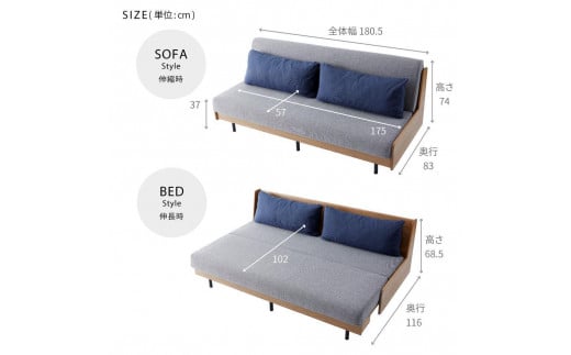 幅180.5cm×奥行83cm×高さ74cm(伸縮時)