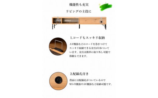 大川家具 テレビ台 幅180cm ローボード テレビボード 大容量収納 コードリール付き